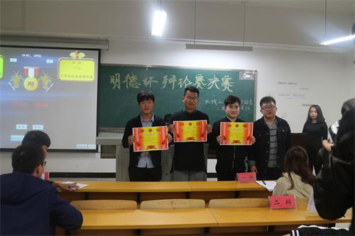 为活跃校园文化气氛,丰富学生的课余生活,增强学生的逻辑思维能力和语言表达能力,提高学生的辩论水平,发掘培养学校辩论人才,11月10日晚6时30分,yL23411永利官网登录第六届“明德杯”辩论赛于机械楼208拉开帷幕。