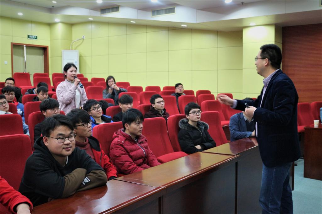他强调,要想脱颖而出、鹤立鸡群,首先应该做到的是“温故而知新”。要立足于本专业,学好专业理论知识,打下坚实基础,才能谈创新和创业。在此基础上,还应当勇于参与社会实践,接触社会、了解社会,熟悉行业规则。他还鼓励学生多参与创新创业大赛,积极响应“大众创业、万众创新”的号召,通过参加创新类大赛开阔眼界、磨砺自我。