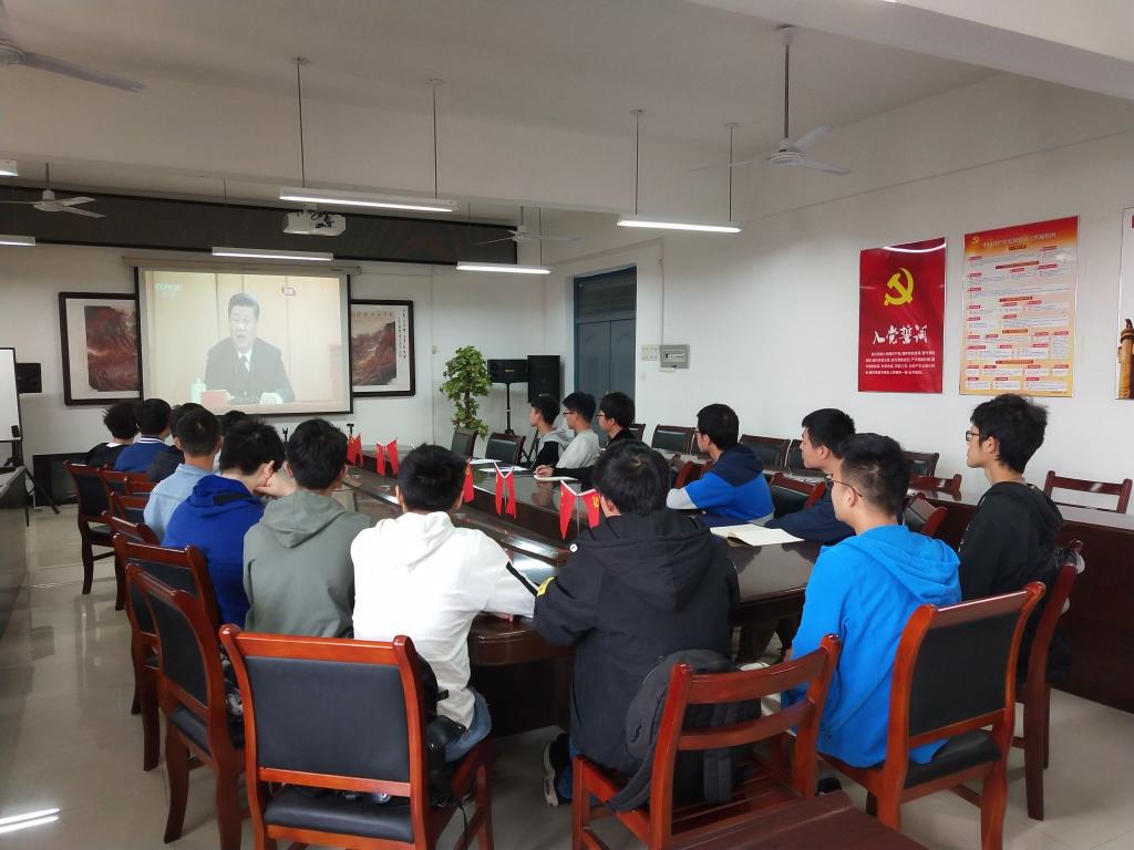 4月30日上午在机械楼526,yL23411永利官网登录分团委组织团员学生观看了纪念五四运动100周年大会直播,认真聆听了习近平总书记在大会上的重要讲话,分团委书记苏娟和2018级团员青年代表观看了直播。