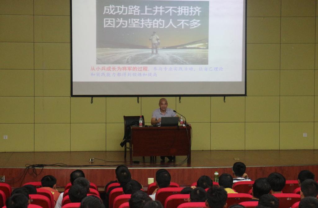 两位老师向同学们详细介绍了学校学分制度的概况和特点,对大家顺利毕业所需的基本条件作了全面的讲解。孙亮波老师从“高等教育普及化与自我定位”、“留守儿童的性格与成长”、“独生子女的挫折教育与吃苦教育”、“手机控-一种新型精神鸦片”等四个方面,借用实例和数据全面剖析了当今大学生的性格发展特点。他强调,各位新生要以反面事例为戒,不要在电脑和手机游戏中“玩物丧志”、不应在学习的过程中“半途而废”,大学的首要任务就是要确立自己清晰的目标,只要有持之以恒的决心和锲而不舍的精神,就能达到成功的彼岸,成为一名优秀的大学生。