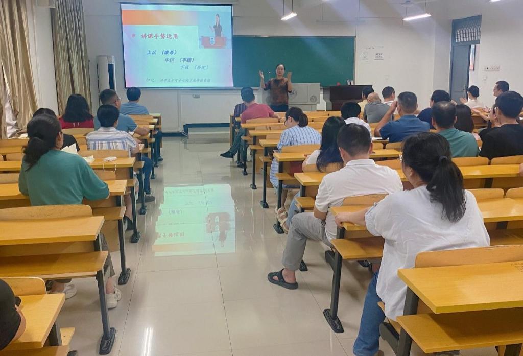 师者,所以传道授业解惑也。那如何才能高效的传道授业解惑呢?杨老师围绕教师的传授力进行剖析,从教学艺术“三力——教学引领力、语言传授力、课堂把控力”和“三忌——惯唱独角戏、骑驴看唱本、似腾云驾雾”进行生动形象的讲解。并通过多样式的“教学”引入、提问技巧、教学方式等帮助教师们提高教学能力。此外,杨老师还强调当今高校教师应具备的五大能力:教学认知能力、教学设计能力、教学调控能力、教学评价能力和运用教学媒介能力。殷殷嘱托催人奋进,杨老师在讲座最后,切切期望全体教师能通过长期的磨砺和积淀来提升教学技能。不忘初心,不辱使命,终获成功。