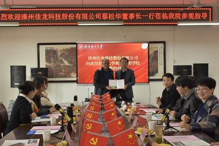 徐燕书记首先表达了对蔡董事长一行的热烈欢迎和最衷心的感谢。千里同好,坚于金石,企业是学校高质量发展的重要资源,是教育创新的关键因素。机械学院一直受到各界企业的关注和支持,企业的无私奉献和慷慨捐赠是学院发展进步的坚实基石和重要保障。佳龙公司此次捐赠,将为学院发展注入新动能,学院也将以此为契机,教育激励广大学子,将这份爱心转化为努力成长成才的不竭动力。