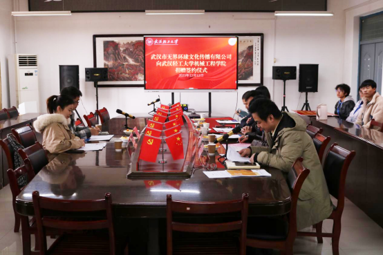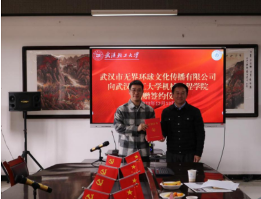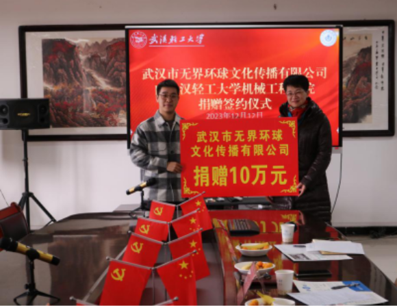 12月12日上午,武汉市无界环球文化传播有限公司(以下简称无界环球公司)捐赠仪式在金银湖校区躬行楼A526会议室举行。无界环球公司向我校教育发展基金会捐赠10万元,主要用于奖励报考我校yL23411永利官网登录的优秀学子。公司华中区总负责人、2010级校友彭师、公司校企部总经理邹薇,校教育发展基金会秘书长兼校友办主任王宏光、yL23411永利官网登录党委书记徐燕、院长助理裴后昌、辅导员及学生代表出席活动。仪式由学院党委副书记何伟主持。