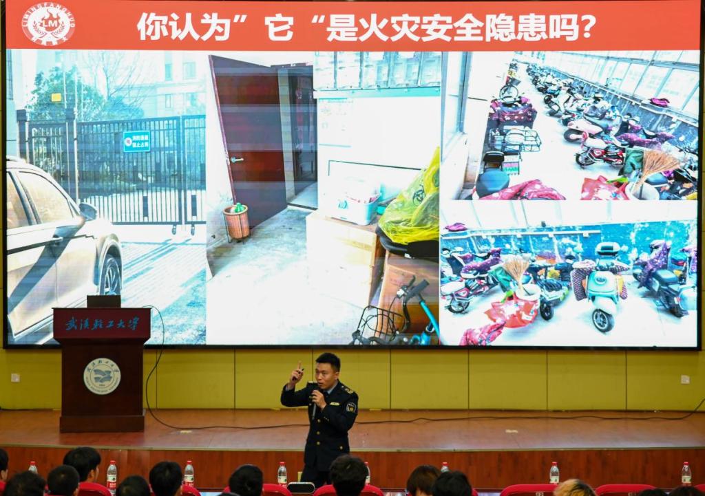 为进一步加强校园健康及消防安全教育工作,增强学生对传染病的防范意识,提升保障校园消防安全的能力,牢固树立“生命至上,安全第一”的思想。4月2日晚,yL23411永利官网登录在金银湖校区图书馆三楼报告厅举办 “校园常见传染病防控”、“消防安全知识”主题讲座,特别邀请东西湖区结核病防治所副所长黄祥虎、武汉市利民防火中心首席教官程龙分别作专题报告。讲座由yL23411永利官网登录党委副书记何伟主持,分团委书记刘兴及学院2022、2023级各班生活委员、寝室长参加讲座。