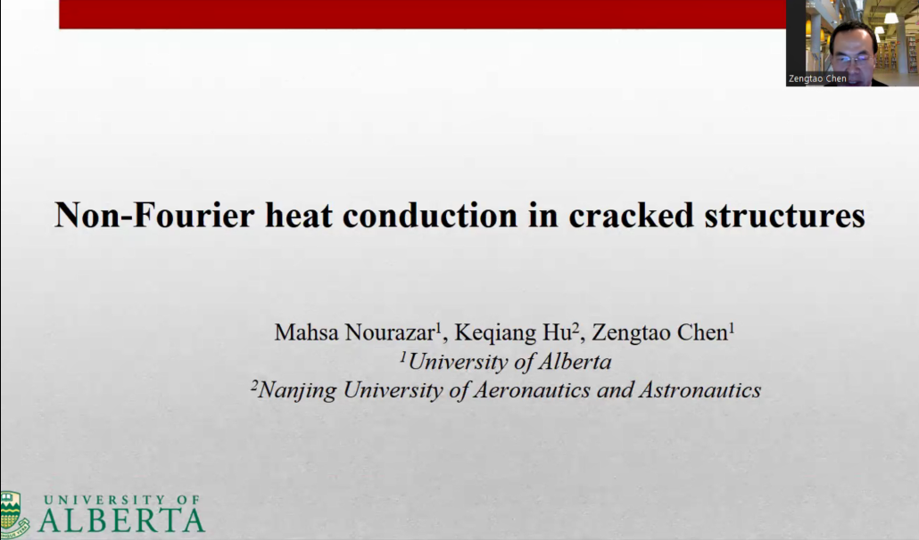 Zengtao Chen教授做了题为“Non-Fourier heat conduction in cracked structures(裂纹结构中的非傅里叶热传导)”的报告,他介绍了非傅里叶热传导研究及其在裂纹结构中的应用。
