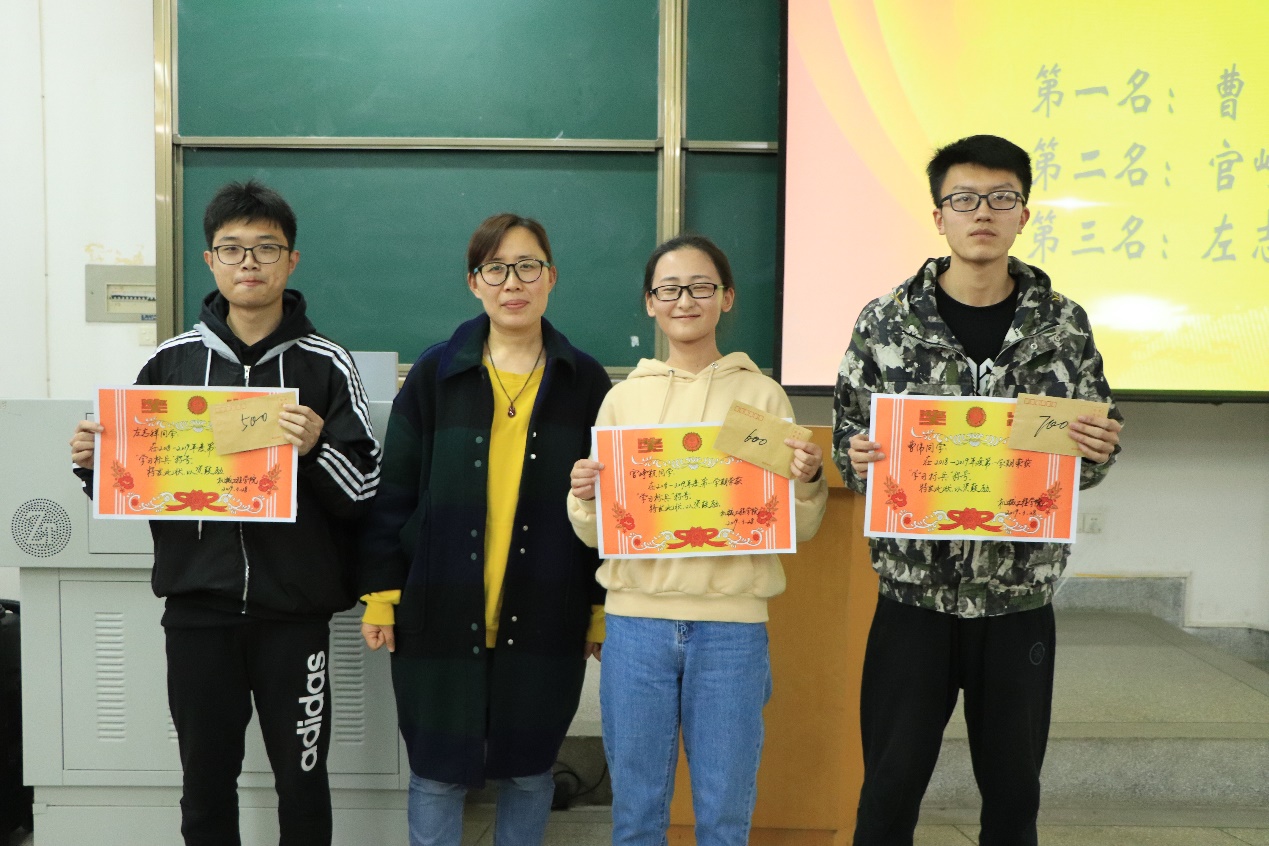 大会对上学期表现优秀的个人和班级进行了表彰。、曹伟、官峥颖、左志祥三名同学分别获得年级前三名的好成绩。机械1807班,包装一班,包装二班分别获得集体前三名。辅导员康老师对于这些优秀学生个人和集体所付出的辛苦付出给予了充分肯定,并代表学院给以上班级和个人颁发奖学金。学生代表曹伟、官峥颖、董明奎就自己的学习经验进行了交流,他们一致认为:要想取得好成绩,首先要养成好习惯,同时还要有认真钻研的求实精神。