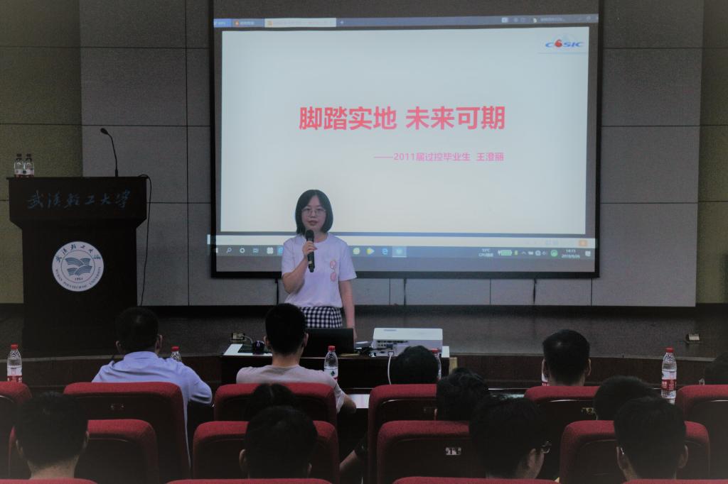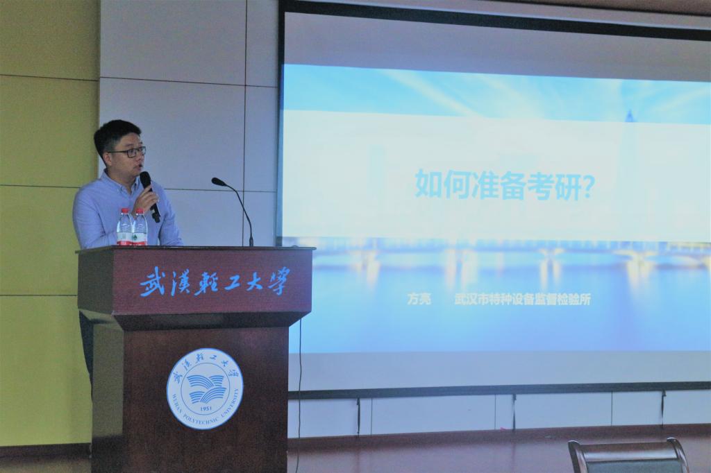 校友王澄丽分享了《脚踏实地、未来可期》的主题报告。她讲述了自己从校园到踏入社会一路走来的经历和感悟,结合自身的工作经验,告诫各位在校生,在校期间,不仅要打下扎实的专业知识基础,还应努力扩大自己的知识面,勇于参加学科实践,为以后胜任工作做好充分的准备。她还引用习总书记的一句话——“奋斗是青春最亮丽的底色”,勉励大家要“依靠自己的力量,成为自己想成为的人”。校友方亮作了《如何准备考研》的报告。他用详尽的数据为大家讲解了如何解决考研中遇到的种种问题,从备考的时间、专业的选择、复习的重点和备考技巧等一一做了详细的阐述,给在场的同学提供了很多非常实用的考研经验。