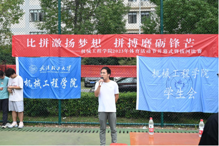 学院党委副书记何伟为活动致开幕词,他希望大家能养成运动习惯,主动走出宿舍、走向操场,积极参加体育锻炼。同时,他希望大家坚持安全第一、友谊第二、比赛第三的原则,在体育活动节的各项活动中赛出水平、赛出风采、赛出风格,力争今年在校级体育赛事上再创辉煌、再获佳绩。