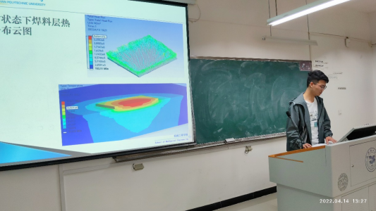 随后,材料创新团队的2021级硕士生刘博文、曾如铁分享了最近的文献阅读,刘博文重点介绍了最近的科研进展。杨军胜老师指出了刘博文同学的研究方法中传热模型存在的不足,王泽安老师就其网格精度问题提问,并给出了建议。各位与会老师积极提问,并针对如何改进开题汇报给了具体的意见和详细指导。