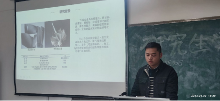 会议开始后,2022级硕士生翟钰做了文献阅读进展汇报,主要就秸秆打捆装置的静力学研究现状和不足做了分析,并提出了下一阶段的研究思路和计划。随后,2022级杨建军同学就生物质粉末颗粒成型的动力学分析做了研究现状综述,并展示了最近的学习进展。最后,2022级夏镇琪同学汇报了TiAl合金的文献阅读情况,针对下一步的研究思路提出了自己的设想,与与会老师做了充分的交流。
